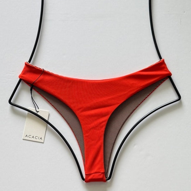 Turn heads with the Acacia Swimwear Brazil Ribbed Bottom in a bold Persimmon orange. Featuring Acacia’s signature ribbed texture, this medium-rise cheeky cut flatters the body while offering just the right amount of coverage. Perfect for beach days, vacations, or poolside lounging.