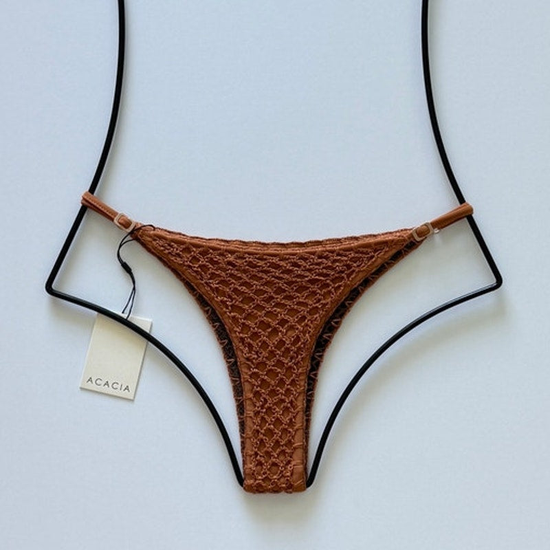 Shop the Acacia Swimwear Neema Crochet Bikini Bottom in Tobacco today and embrace bohemian beach style!