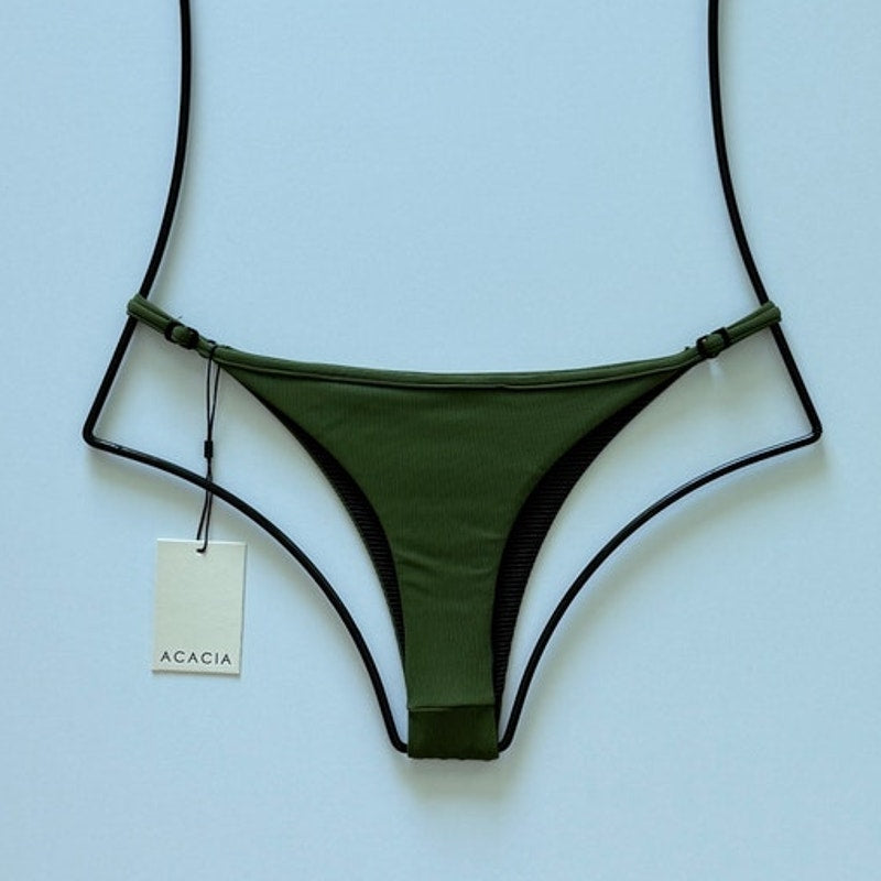 The Basil colorway is a rich, earthy green that complements all skin tones, bringing a natural yet elevated vibe to your beach or pool look. Designed with high-quality stretch fabric for comfort and durability, these bottoms are perfect for mixing and matching with your favorite Acacia swim tops.