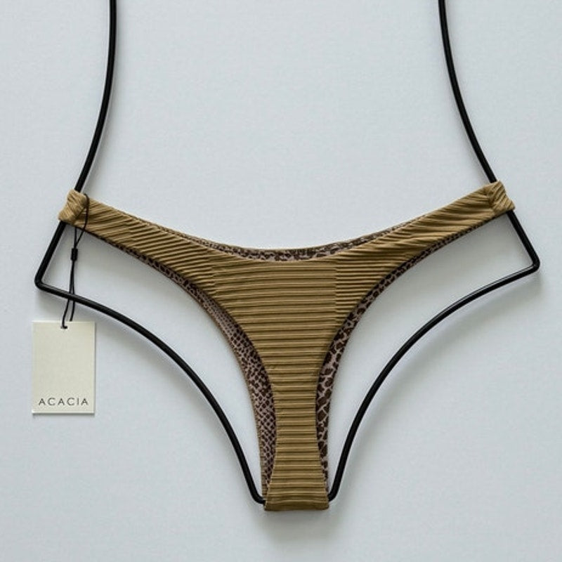 Crafted from Acacia’s signature soft and supportive ribbed fabric, this luxe bikini bottom features a rich palm brown tone that blends natural earthiness with modern sophistication.