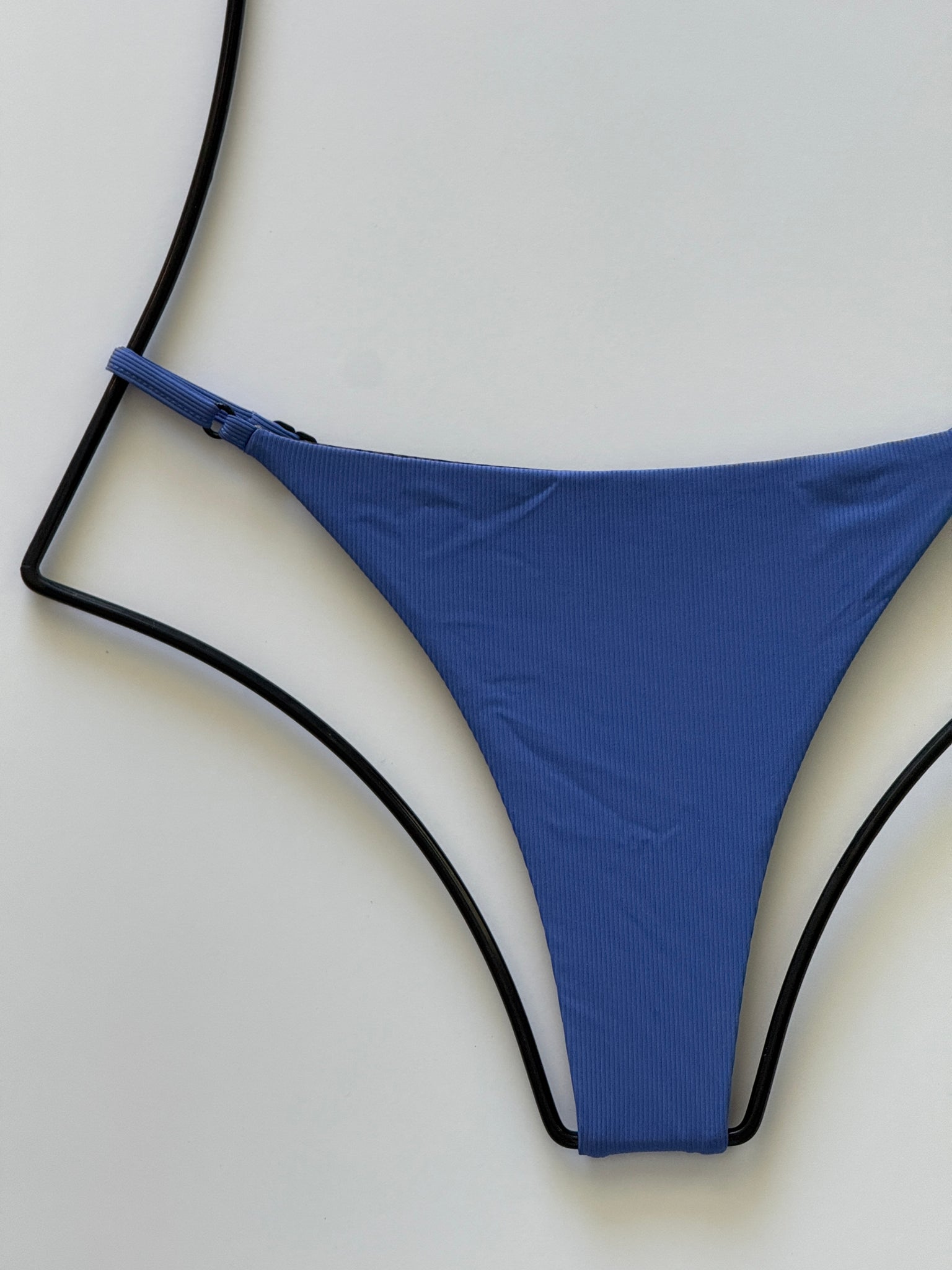 The Acacia Swimwear Ralphy Ribbed Bikini Bottom in Sapphire blends minimal design with rich color and texture. This flattering, high-cut silhouette features minimal coverage for a sleek, confident fit and adjustable side straps for a personalized feel. The matte custom logo hardware and fine ribbed texture elevate the simple design with refined detail.