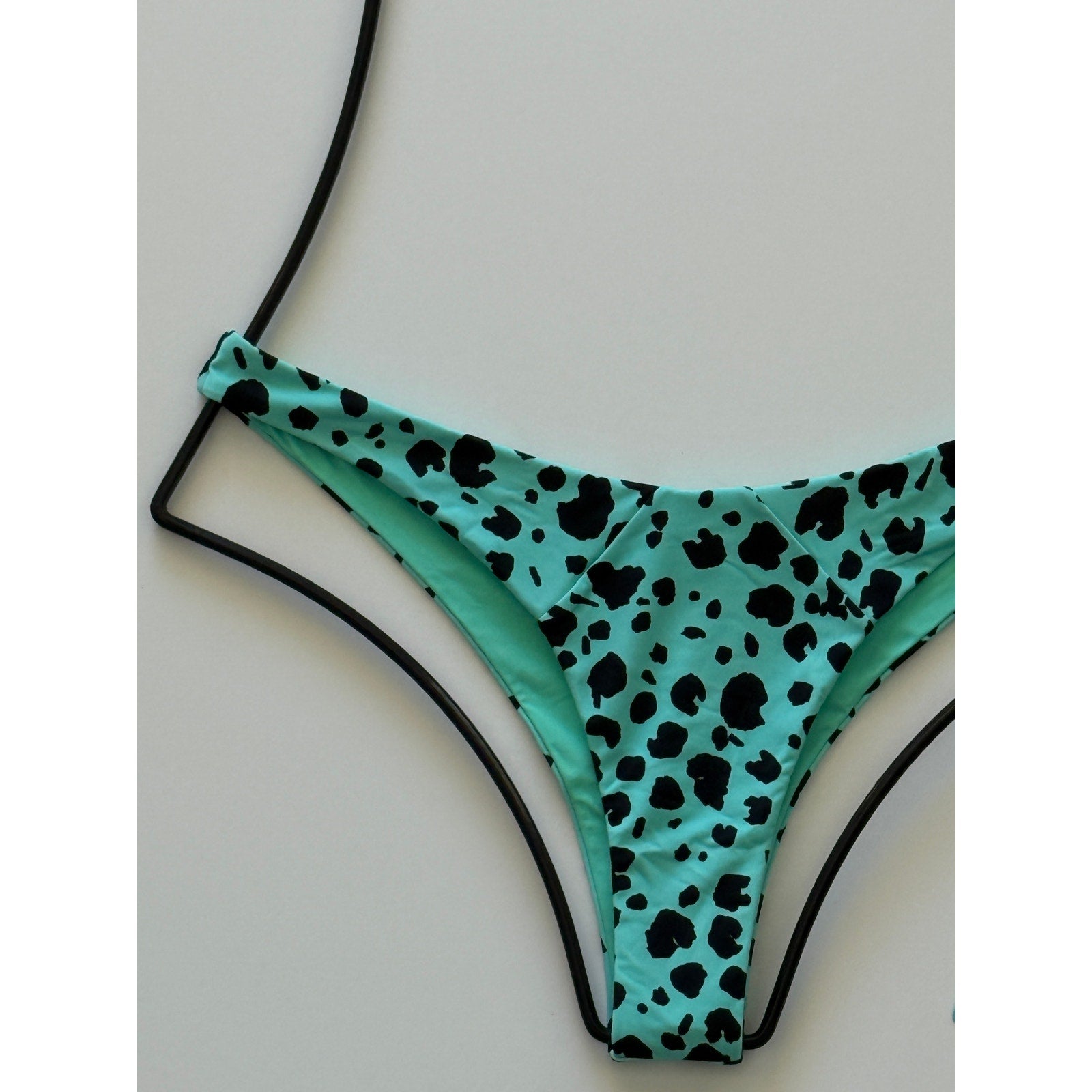 Turn heads in the Beach Bunny Sydney Tango Bikini Bottom in the bold Animal Dot (Aqua/Black) colorway. Designed with a flattering Brazilian cut, this bottom offers minimal coverage and a sleek, modern silhouette. The versatile design can be worn high-leg or low at the hips for a customized fit.