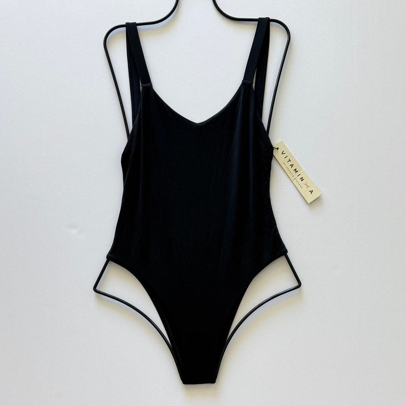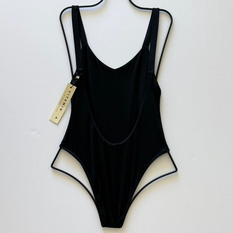 The iconic Vitamin A Leah Bodysuit One Piece in Black EcoLux🖤 — timeless, sculpting, and endlessly chic.