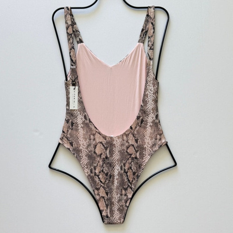 Make a bold statement in the iconic Vitamin A Leah One Piece in Levisa Snake.
