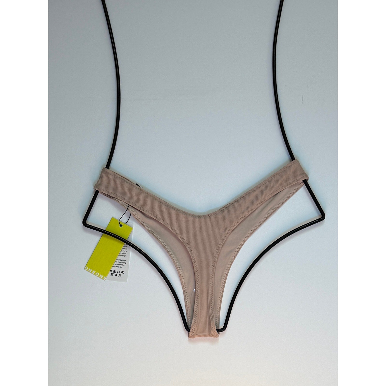 The OneOne Swimwear Heidi Skimpy Bottom in Sand is a sleek, minimal-coverage bikini bottom designed to flatter your shape with a high-leg cut and cheeky back. Crafted from high-quality stretch fabric, this versatile sand-toned neutral pairs effortlessly with any swim top. Perfect for tanning, vacations, or poolside lounging.
